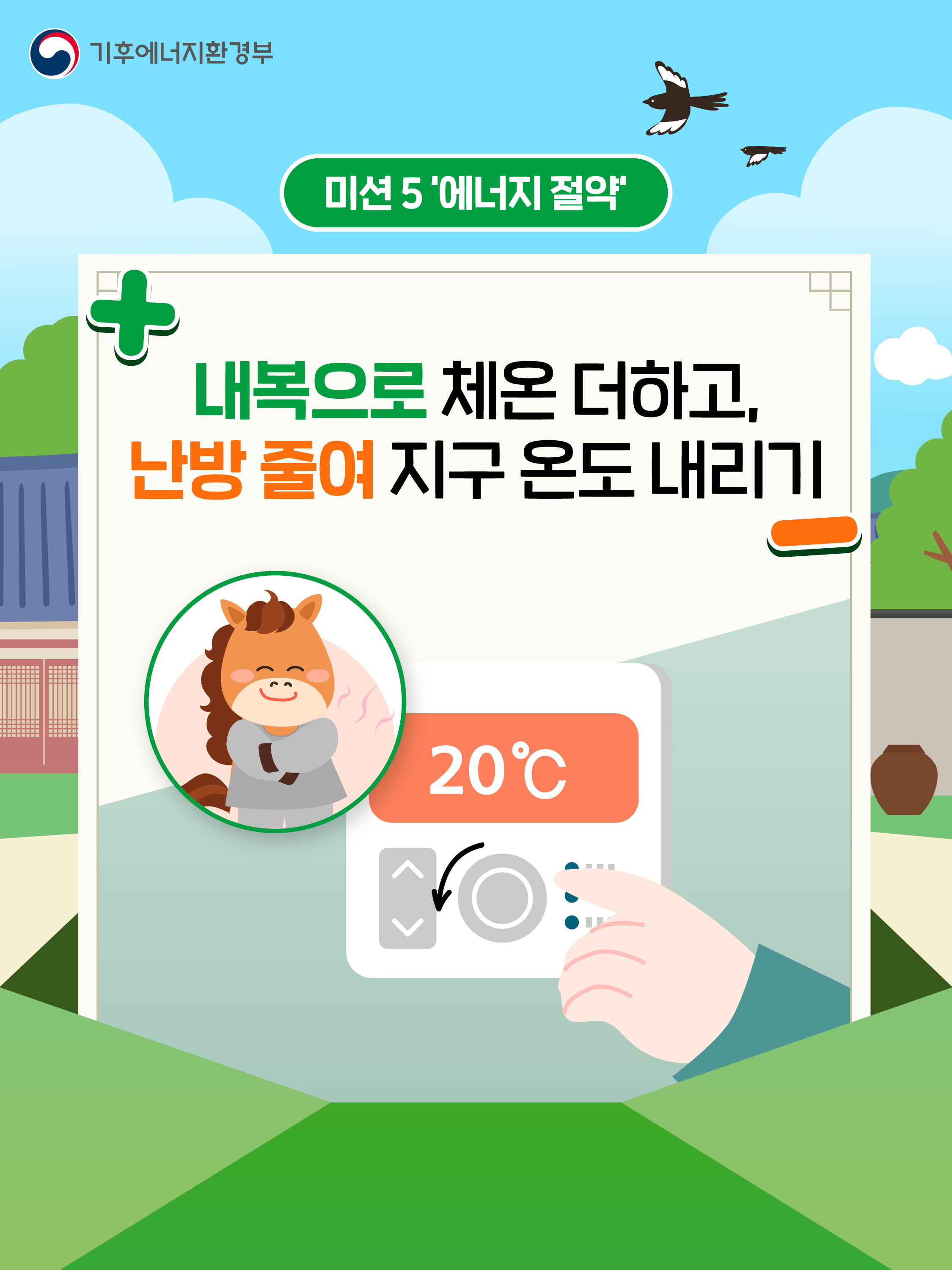 내복으로 체온은 더하고(+), 난방 줄여 지구 온도 내리기(-)