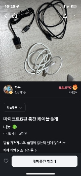 안쓰는 핸드폰 충전케이블을 나눔했어요. 필요한분께 잘 전달되어 환경보호에 이바지한 것 같아 뿌듯합니다. 2025-11-13