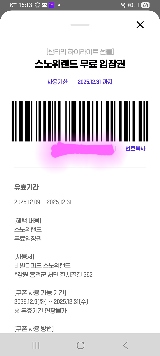 저한테는 필요 없는 강원도에 있는 비발디파크 스노위랜드 무료 입장권을 필요한 사람한테 나눔 했어요. 2025-12-11