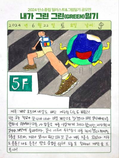 [탄소중립 일러스트&그림일기 공모전] (그림일기-참가상) 계단 오르며 내 살도 빼고 지구의 CO₂도 빼고