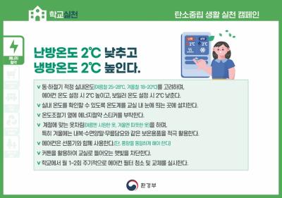 난방온도 2℃ 낮추고, 냉방온도 2℃ 높인다.