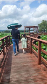 땡볕이라 모자가 없는 시아버지께 양산을 빌려드렸더니, 확실히 뜨거움이 줄고 덜 덥다고 하십니다.