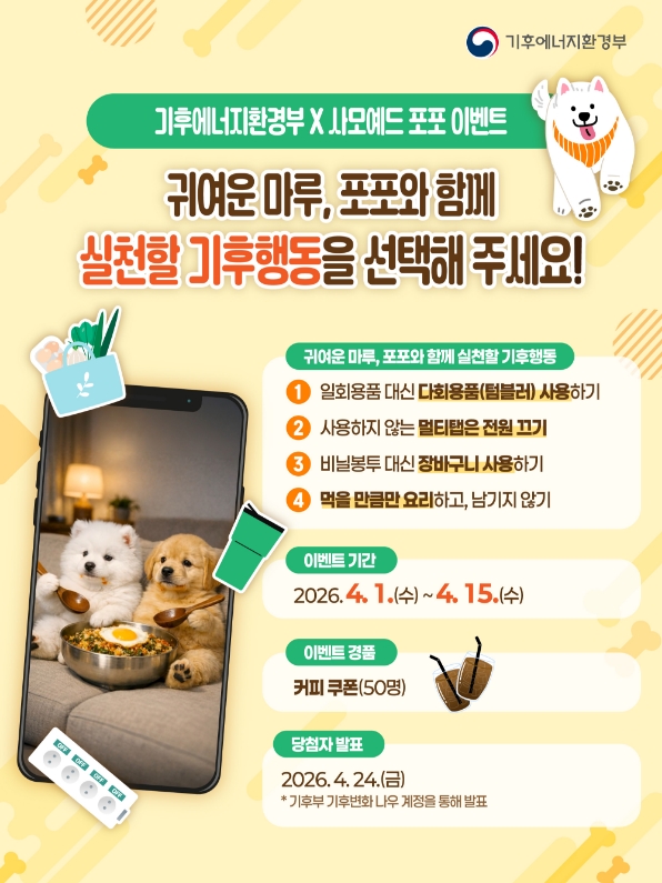 * 기후부 X 사모예드 포포 릴스 게시물에 댓글을 남겨야 참여 인정! -