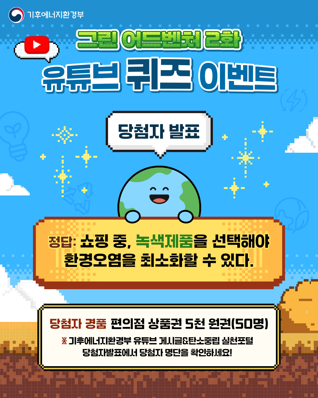 [당첨자발표] 그린어드벤처 2화 유튜브 퀴즈 이벤트 당첨자발표