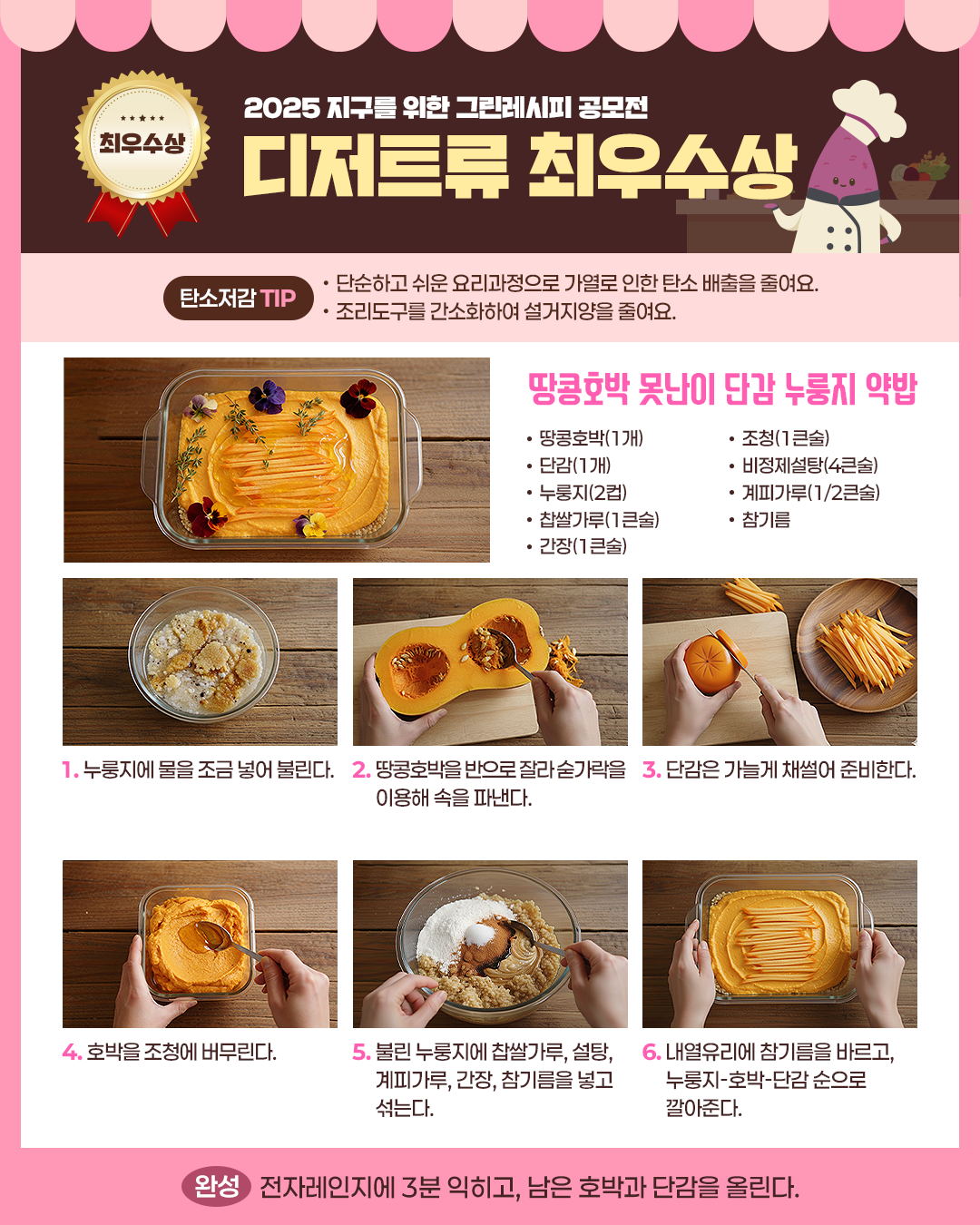 [그린레시피 공모전] (디저트류_최우수상) 땅콩호박 못난이 단감 누룽지 약밥
