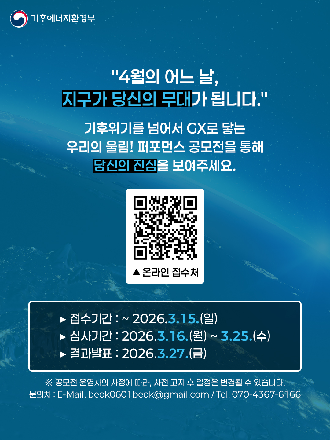 2026 GX 국제주간·기후변화주간 대학생 퍼포먼스 공모전: GX테이지업(GX+Stage UP)