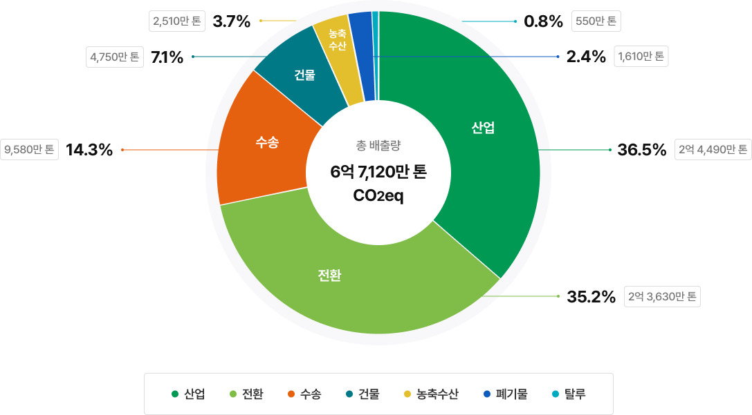 출처 : (보도자료)2022년도 온실가스 배출량 7억 2,429만톤, 전년 대비 2.3% 감소, 온실가스종합정보센터