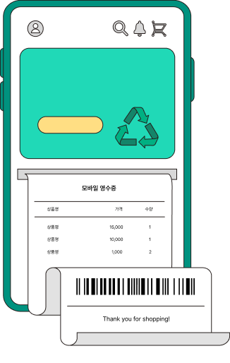 모바일 영수증을 발급받고 미리 챙겨온 장바구니에 쏙쏙 담으며
