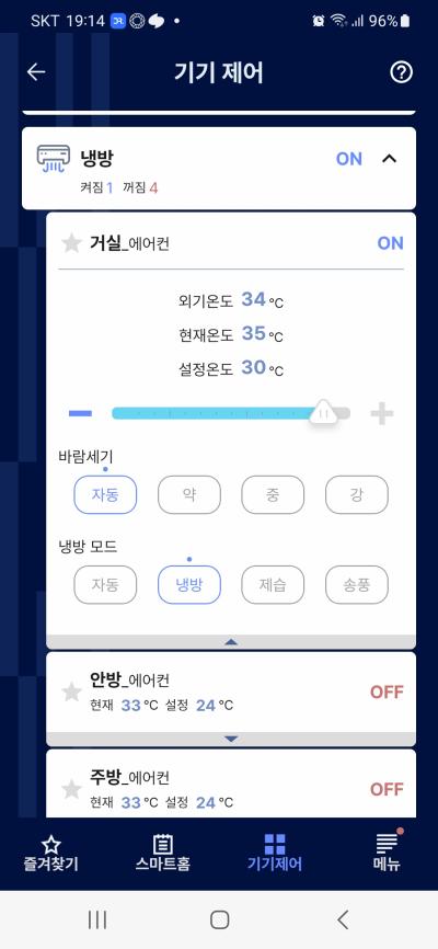 환경과 에너지절감을 위해 희망 냉방온도를 30도로 설정하였어요. 2025-08-15